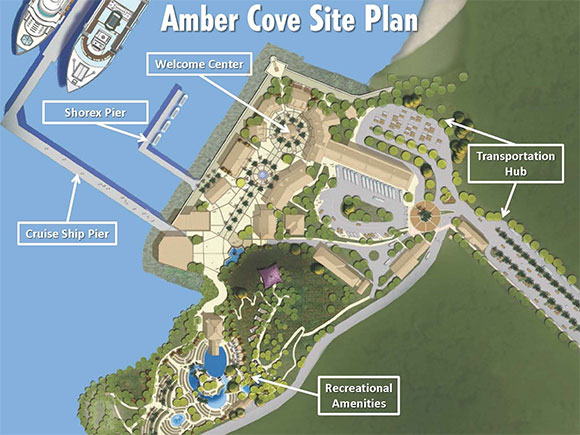 AMBER COVE (Crique d'Ambre) est placée sur la côte du nord du pays. Le nouveau port est en construction en partenariat avec Grupo B*R et s'attend à accueillir plus de 250,000 croisièristes en sa 1ère année et fournir presque 430 emplois locaux. AMBER COVE porte le nom des réserves de minéraux riches d'ambre dans la région.